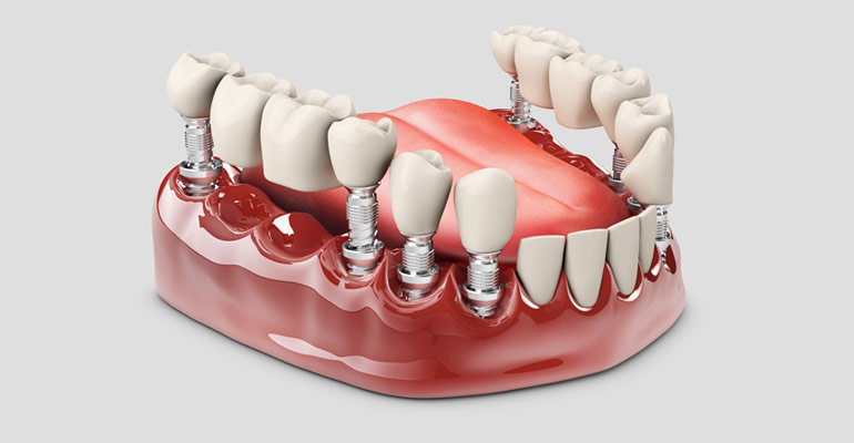 A dental crown can cap an individual's damaged or decaying tooth or be placed on top of a dental implant to replace a missing tooth. Dental implants are metal fixtures, surgically fastened to your jawbone below the gums. These metal implants become anchored to your bone through osseointegration (the bone fuses to the metal). This process provides stable support you can rely on while eating and speaking. According to the Cleveland Clinic, the healing process after getting an implant can take 6-12 weeks.