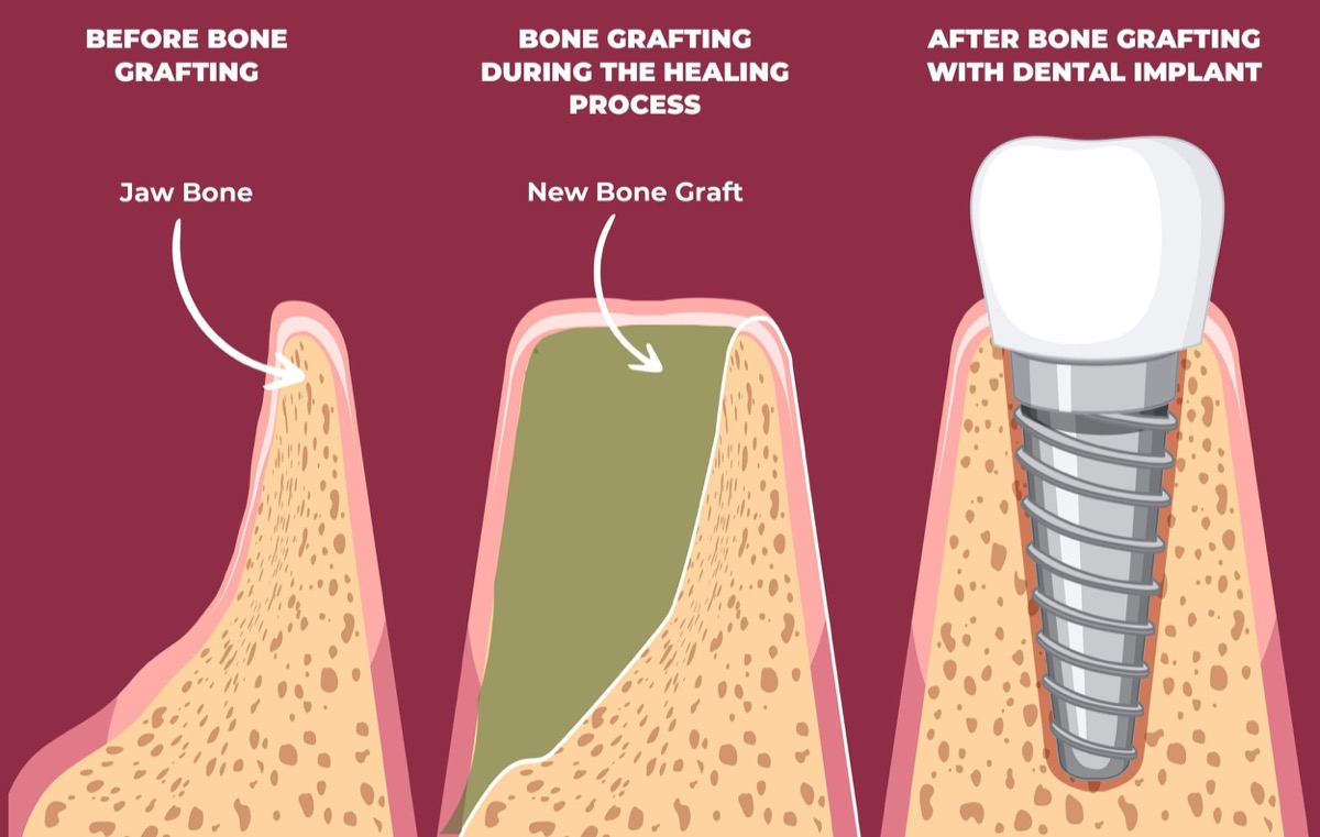 . In most cases, bone grafts for dental implants must heal completely before the actual implant is placed. Because each person is unique, recovery times vary. In rare instances, your dentist may be able to place a bone graft and a dental implant at the same time. But this is decided on a case-by-case basis.